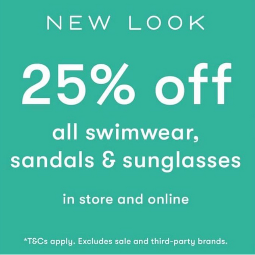 Head to New look to get 25% off all swimwear, sandals and sunglasses