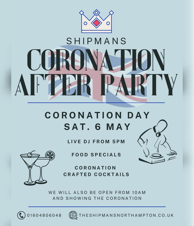 - Coronation After Party at The ShipmansCORONATION DAY Join us on Saturday 6th May for coronation day. We will be opening...