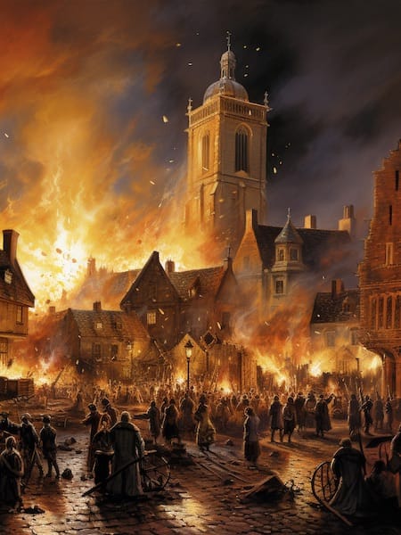The blaze is believed to have been caused by sparks from an open fire in a home on St Mary’s Street, near the former castle site. As the flames raged, residents were forced to flee while prominent buildings such as All Hallows Church were reduced to ashes.