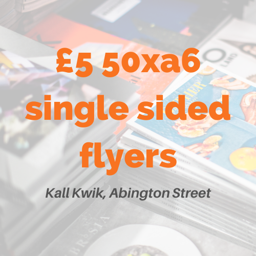 - Kall Kwik – Fiver Fest!Kall Kwik, 85 Abington St, Northampton NN1 2BH 50 x A6 single-sided 150gsm flyers for...