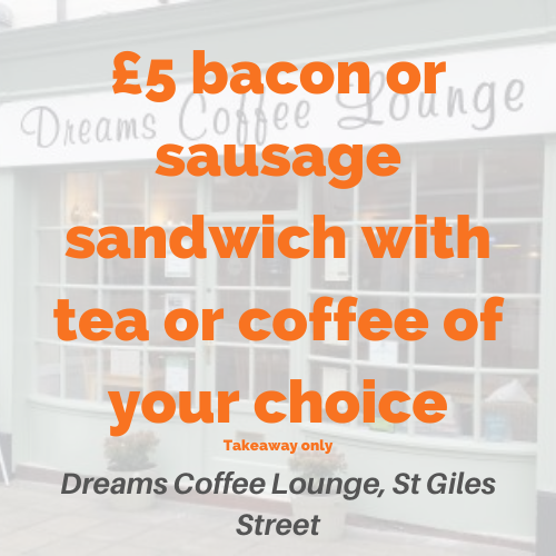 - Dreams Coffee Lounge – Fiver Fest!Dreams Coffee Lounge, 59 St Giles' St, Northampton NN1 1JF A takeaway bacon or sausage...