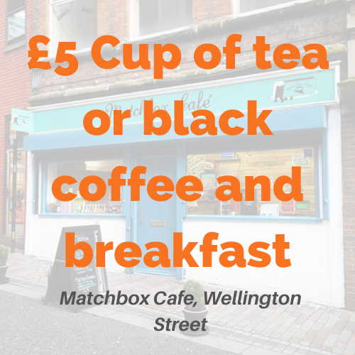 - Matchbox Cafe – Fiver FestMatchbox Cafe, Wellington House, 47 Abington St, Northampton NN1 2AW £5 for a cup of...