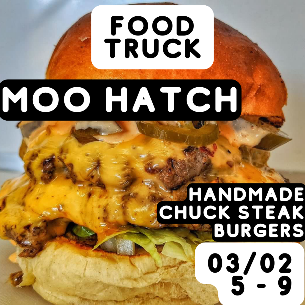Saturday 3rd: Food Truck: Moo Hatch AND Brooklyn brownie co. Two award winning food trucks will be parked up on the front, @moohatch serving delicious handmade chuck steak burgers, and @brooklynbrownieco selling amazing artisan US brownies. 5-9.