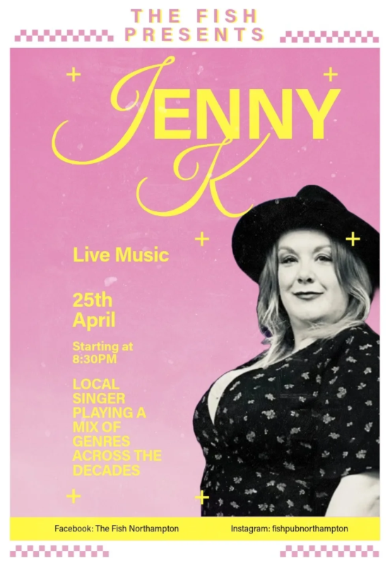 Friday 25th April – Jenny K Live! Live music from 8:30 PM Local legend Jenny K brings a mix of genres from across the decades!