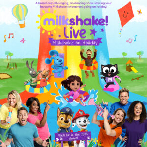 Milkshake! Live is back with a brand-new show! Join your favourite Milkshake! friends on Holiday with Chase and Marshall from Paw Patrol*, DORA, Pip and Posy, Blue from Blue’s Clues and You!, Milo, Milkshake! Monkey plus two presenters for an all-new adventure! Pack your bags and jump aboard the Milkshake! train as we go on an all singing, all dancing holiday together!