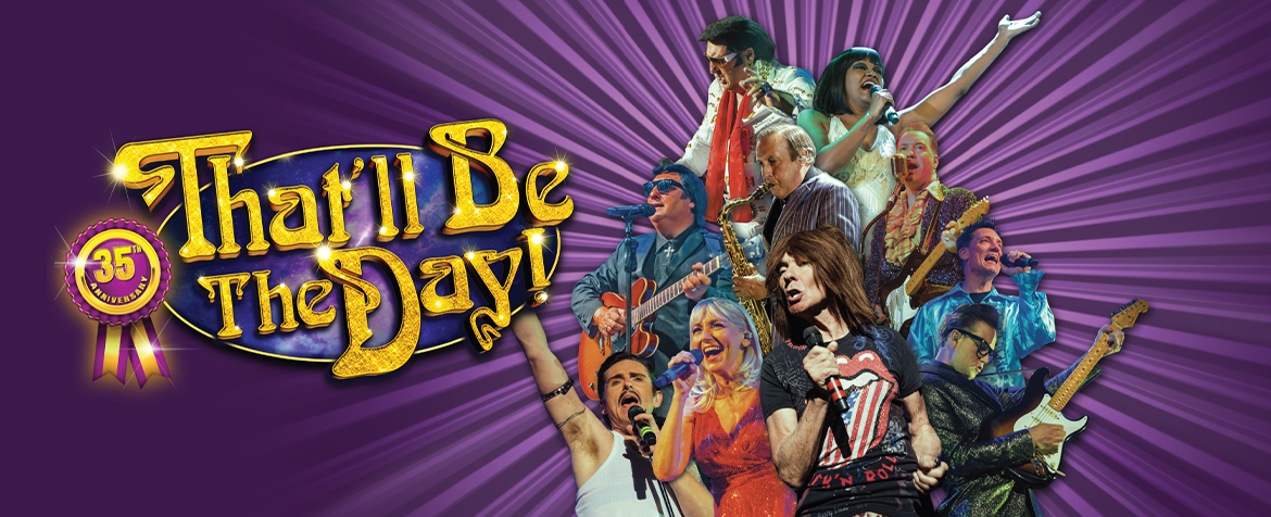 From humble beginnings, the show has grown into a “must see” attraction all over the UK, coming up with a new production from its multi-talented cast year after year. Unashamedly nostalgic, That’ll Be The Day takes its audience on a rollercoaster ride through the golden age of Rock and Roll and Pop. The show has been described as “Relentlessly Entertaining”, mixing brilliant vocals and superb musicianship with impersonations and hilarious comedy routines.