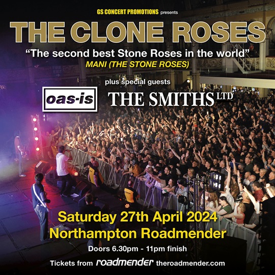 FOLLOWING THEIR HUGELY SUCCESSFUL 25TH ANNIVERSARY TOUR IN 2023 CULMINATING IN A 6000+ SELLOUT HEADLINE SHOW AT MANCHESTER’S’ HEATON PARK, THE CLONE ROSES RETURN TO NORTHAMPTON ROADMENDER AS PART OF THEIR SPRING UK TOUR ON SATURDAY 27TH APRIL.
