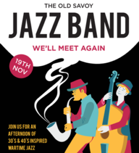 The Old Savoy Jazz Band: We’ll Meet Again Sunday 19th November 3.30pm An afternoon of 30’s and 40’s inspired wartime jazz. Featuring house favourites: Fern Roach, Clive Fletcher and performing group The Starlight Sisters!