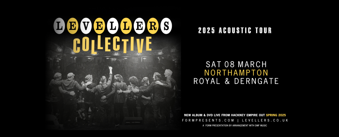 After two highly acclaimed acoustic tours and albums in recent years, the Levellers Collective bring their new tour to Northampton this March. The Collective live shows, and albums, came about after the Levellers decided to do something a bit different with their extensive back catalogue in 2018. Together with members of fellow Brighton group The Moulettes, they went on to record two albums radically reworking their songs – with producer John Leckie (We The Collective) and Sean Lakeman (Together All The Way). The new acoustic arrangements of those Levellers songs, old and new, can now also be seen and heard on a new Live Album & DVD which was recorded in 2023 at London’s iconic Hackney Empire. The film captures the spirit of the Levellers as never seen before as multiple cameras were positioned onstage for the recording and the result is a truly privileged vantage point.