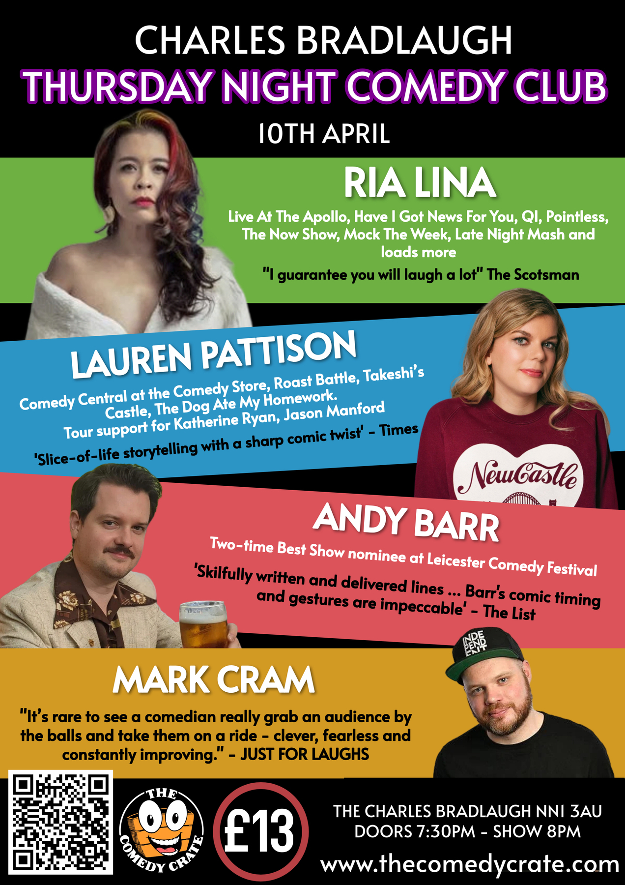 The Picturedrome 222 Kettering Rd, Northampton, Northants, United KingdomDouble Headliner Bobby Mair Originally from Canada, Bobby Mair is a uniquely talented stand up comedian that can set any comedy room ablaze. Winner of multiple comedy competitions, Bobby has opened for global touring comedians, including Bill Burr, Bill Maher, and Doug Stanhope. Since moving to the UK, he has established himself as a stand out headliner with many TV appearances, including Roast Battle (Comedy Central), 8 Out of 10 Cats (Channel 4) and Russell Howard’s Good News (BBC Three). He was also the host of the reality horror show, Killer Camp (ITV2), and starred in the reality sitcom, Bobby and Harriet: Get Married (Vice). Charlie Baker Charlie’s versatile talents as a stand-up comedian, actor, and highly acclaimed jazz-singer have seen him earn a reputation as ‘a superior take on the modern showman’ (Guardian). On screen, he has starred in countless shows including The Last Leg, Harry Hill’s Tea Time, Comedy Central at the Comedy Store, The Great British Bake-Off: An Extra Slice, Never Mind the Buzzcocks, Richard Osman’s House of Games, Edinburgh Comedy Fest Live, The Dog Ate My Homework and Channel 4’s Comedy Gala. Charlie also starred in the leading role in Harry Hill’s Tony! The Tony Blair...