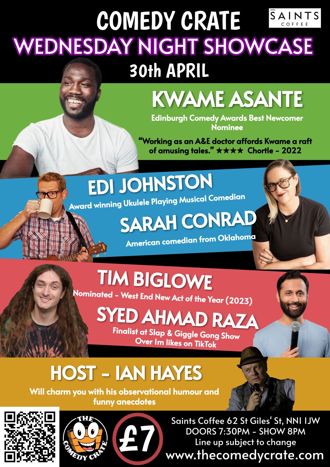 Join us for a new act new material night where 5 acts will try out some new jokes. These nights are also a showcase for upcoming acts. Plus you will get one headline act. Venue: Saints Coffee, 62 St Giles' St, Northampton NN1 1JW Times: Doors 7pm - Show 8pm Price: £7 No booking fee Line ups are subject to change.
