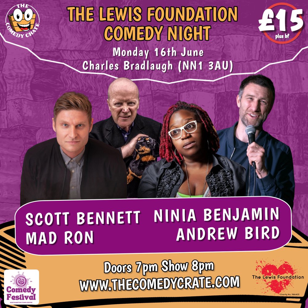 Venue: The Charles Bradlaugh 1, Earl Street, NN1 3AU. Times: Doors 7pm - Show 8pm Featuring: Scott Bennett, Ninia Benjamin, Andrew Bird, Mad Ron Price: £15 + £1 booking fee Line ups are subject to change.