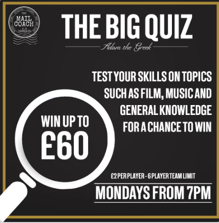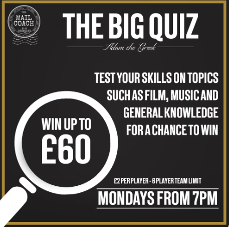 Mail Coach 8 Derngate, northampton, Northamptonshire, United KingdomGet ready for an electrifying night of brain-teasing fun at Mail Coach Northampton in Northampton! Join us for an exciting Quiz event hosted by the one and only Adam the Greek. Put your knowledge to the test and compete with friends for fantastic prizes. Don't miss out on the chance to showcase your trivia skills and enjoy a lively atmosphere with great company. Whether you're a seasoned quizzer or just looking for a good time, this event is perfect for everyone. Grab your team and head to Mail Coach Northampton for a night of laughter, friendly competition, and unforgettable memories!