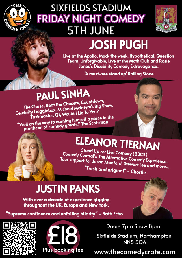 Jun 5 8:00 pm - 10:30 pm Live Comedy at Sixfields Stadium Sixfields stadium Sixfields Stadium,, Northampton Event Details Get Directions