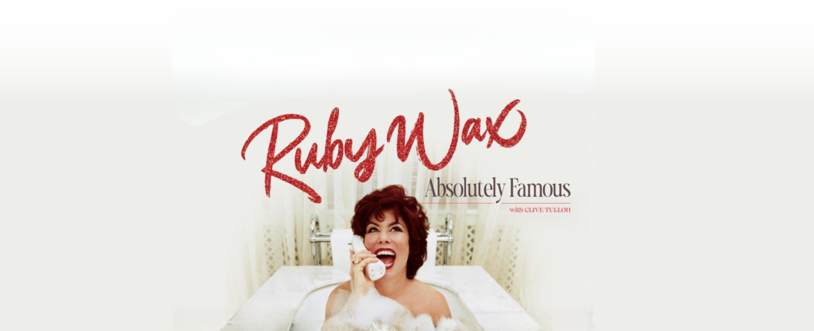 It’s almost easier to say whom Ruby Wax DIDN’T meet, interview and coax fascinating insights from in her huge TV shows ‘Ruby Wax Meets‘ and ‘Full Wax‘. Donald Trump, OJ Simpson, Pamela Anderson, Madonna and many more. Her provocative, abrasive, incomparable style was – just about – kept in check by lifelong friend and A-list producer, Clive Tulloh. Together live on stage they review clips from the extraordinary shows, tell scandalous stories never before heard – and take the audience along for the ride. Featuring Ruby Wax & Clive Tulloh.