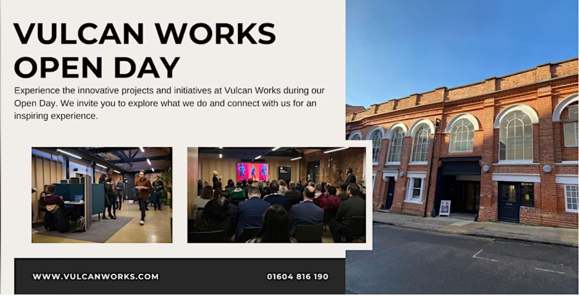 Experience the innovative projects and initiatives at Vulcan Works during our Open Day Welcome to Vulcan Works Open Day! Join us at Vulcan Works - Offices & Coworking Space for a day filled with networking, and discovering new opportunities. Whether you're a freelancer, entrepreneur, or just curious about coworking spaces, this event is for you! Explore our modern facilities, tour our offices and meet our vibrant community. Don't miss this chance to see firsthand what makes Vulcan Works the perfect place to work and connect. Mark your calendar and come along to Vulcan Works Open Day – we can't wait to show you around!