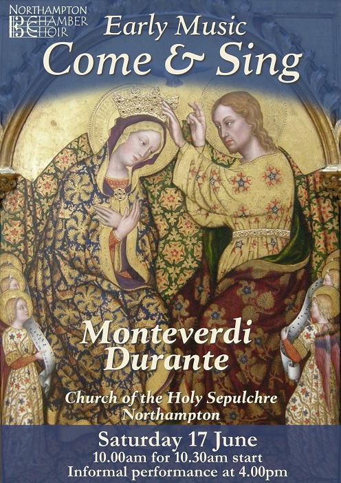 Come and Sing - Postponed Saturday 17 June, Holy Sepulchre, Northampton Unfortunately due to unforeseen circumstances we now need to postpone this event until Autumn/Winter. We hope you will still join us for our concert in July - see details below; O Sing Joyfully! Saturday 8 July, Holy Sepulchre, Northampton The choir returns to the Church of the Holy Sepulchre, this time to perform the Monteverdi in concert, along with other European music from the period by composers such as Tallis and Batten. Sit back and relax in this superb historic building and listen to the choir along with organ and string accompaniment from Thomas Moore, Adrian Turner and others. Tickets are £15, free for under 19s, available via the link below with an early purchase discount, or on the door: Get Tickets for "O Sing Joyfully!" Full details at www.northamptonchamberchoir.org.uk/concerts.html