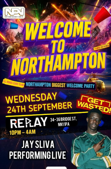 About the event WELCOME TO NORTHAMPTON | THE BIGGEST WELCOME PARTY | JAY SLIVA PERFORMING LIVE ? Welcome to NORTHAMPTON 2025! ? Get ready to kick off your uni life in Northampton with the ultimate freshers event of the year! This isn't just any party—it's an experience you won't forget! ? ? Epic Tunes & Top DJs ?Dance the night away to the hottest tracks spun by some of the UK's best DJs. Expect electrifying beats, mind-blowing drops, and a dance floor that's going to be on fire! ? Whether you're into house, hip-hop, or chart-toppers, we've got you covered! ? Delicious Drinks & Crazy Cocktails ?Sip on exclusive freshers-themed cocktails and enjoy unbeatable drink deals all night long. ?? We've got something for everyone, from classic mixes to unique creations that'll have you coming back for more! ? Glow in the Dark Madness ?Get your glow on with our neon paint stations and UV lights. ? Shine bright, stand out, and make some unforgettable memories as you light up the night with your new mates! ? Awesome Prizes & Giveaways ?We're giving away amazing prizes throughout the night, from cool merch to tickets for future events. ?? Be there...